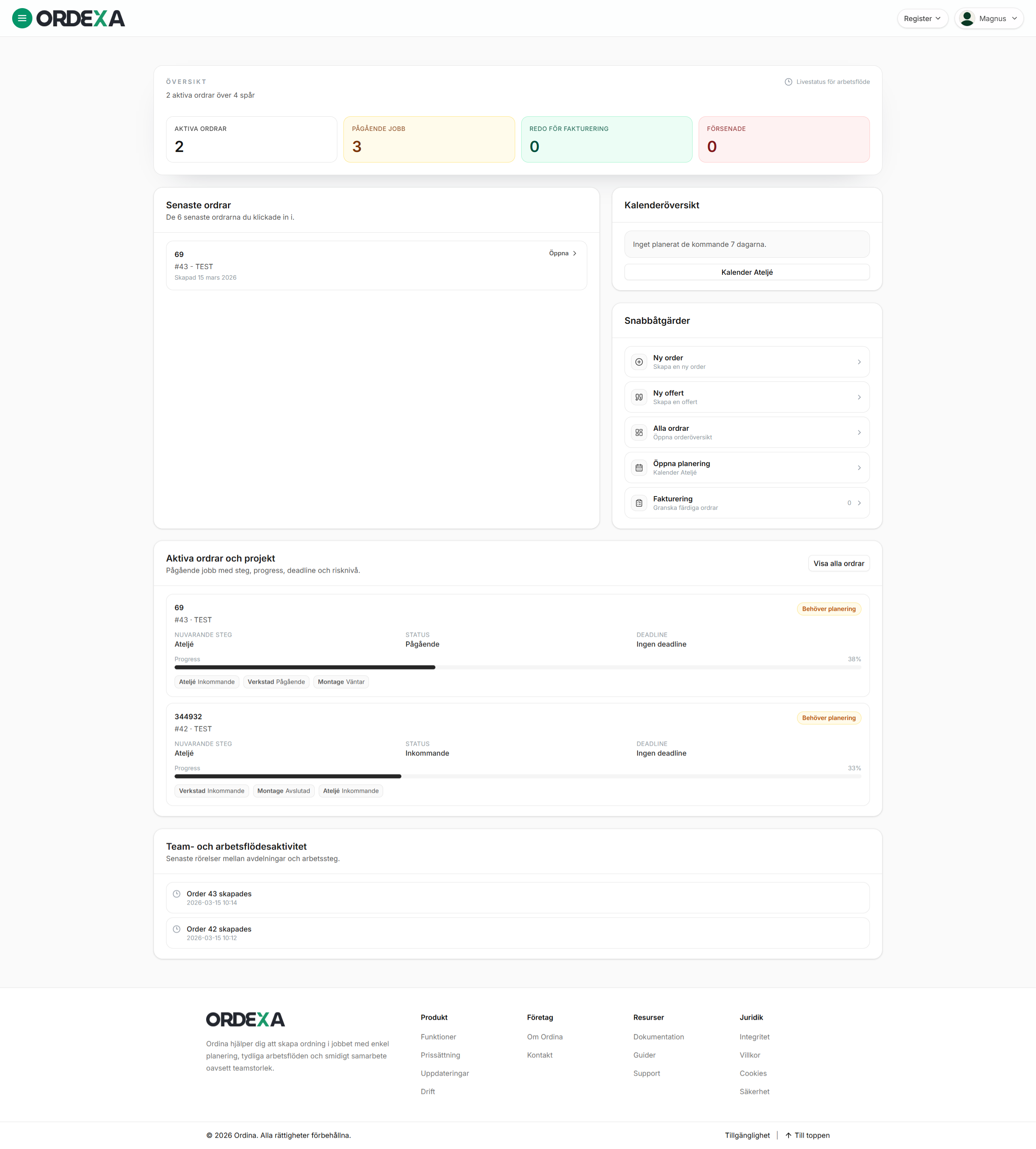 Ordina samlar order, planering, tid och filer i ett flöde – så att alla vet vad som ska göras, utan att du behöver jaga någon.